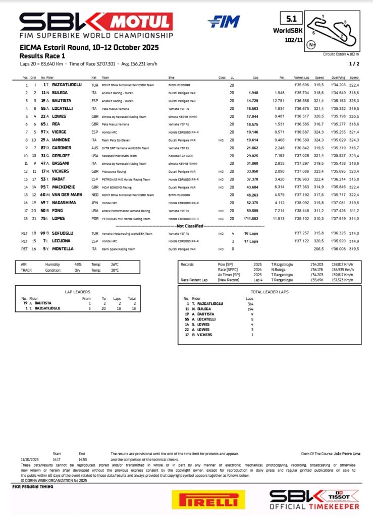 Toprak now has a 41 point lead in the championship standings, two more chances tomorrow for Bulega to close the points gap down.